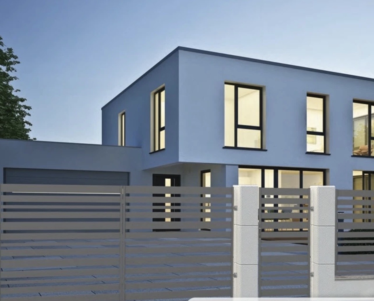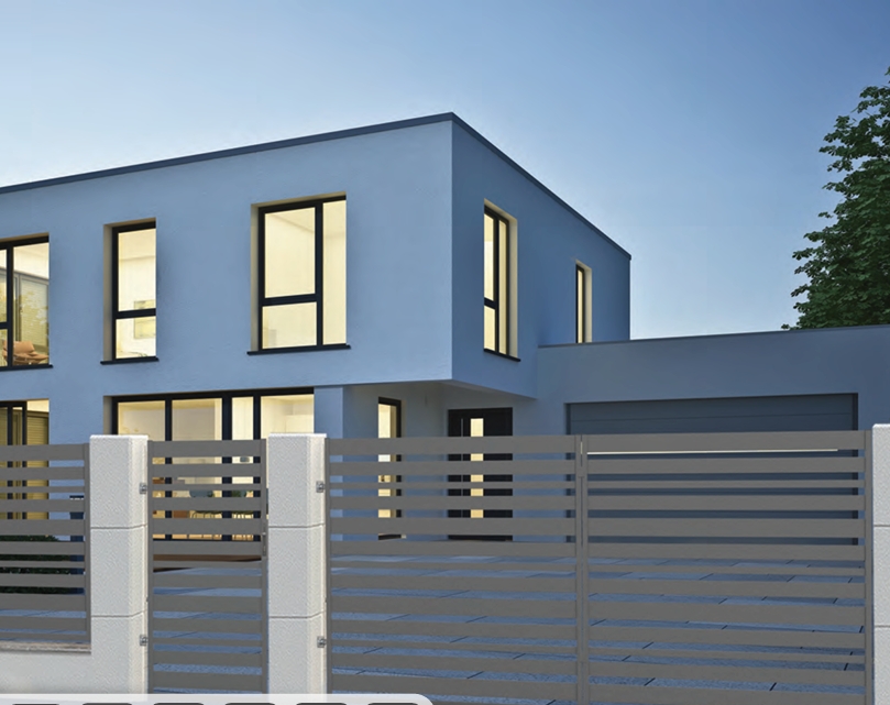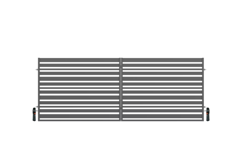Modernes Einfahrtstor System mit mehreren angebrachten horizontalen Lamellen – in verschiedenen Breiten verfügbar